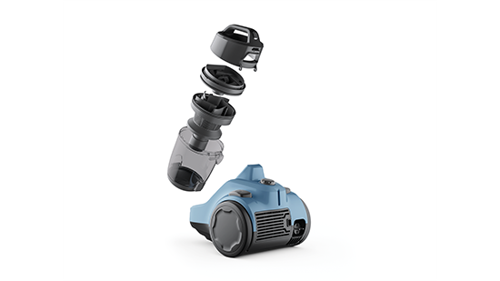Máy hút bụi không túi của chúng tôi với hệ thống lọc bốn bước tách bụi hiệu quả để làm sạch sâu hơn.