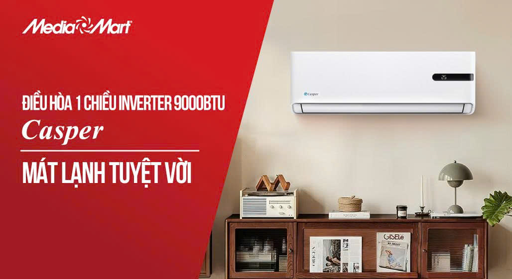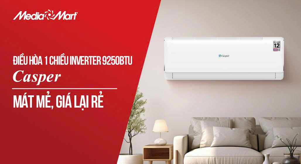 Điều hoà Casper 1C 9.000BTU SC-09FS33 hiện chỉ có giá 6,99 triệu đồng trên các hệ thống siêu thị điện máy MediaMart trên toàn quốc.
